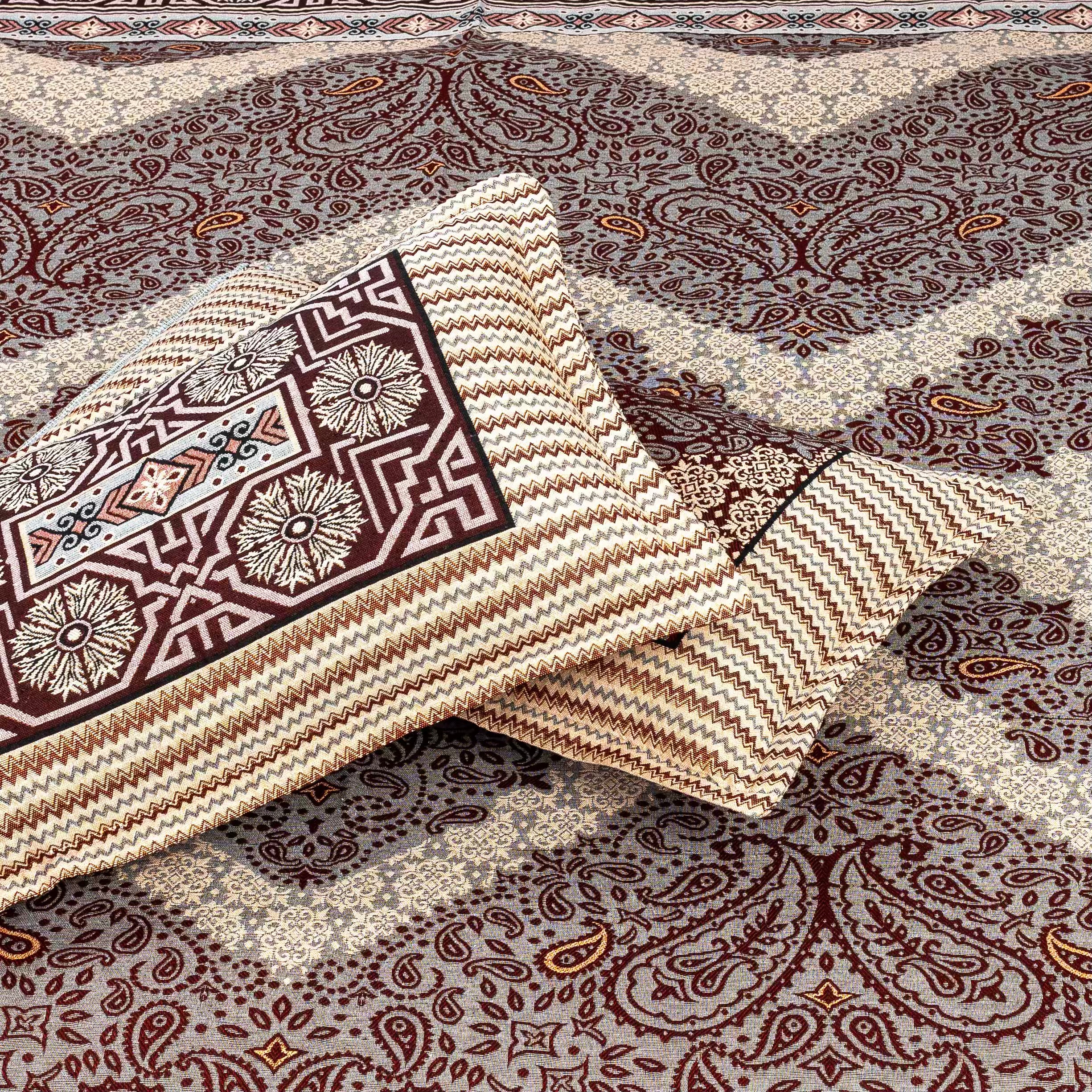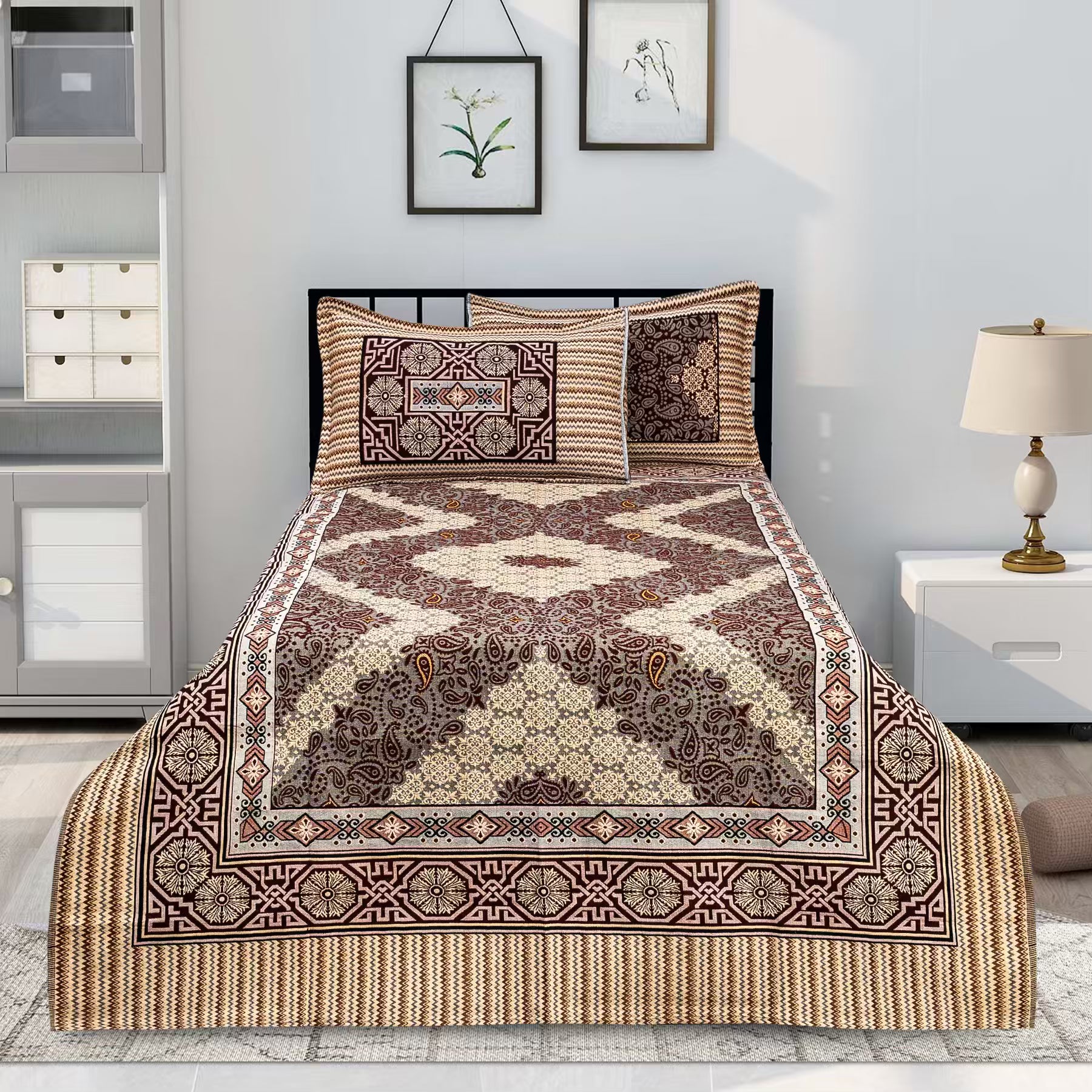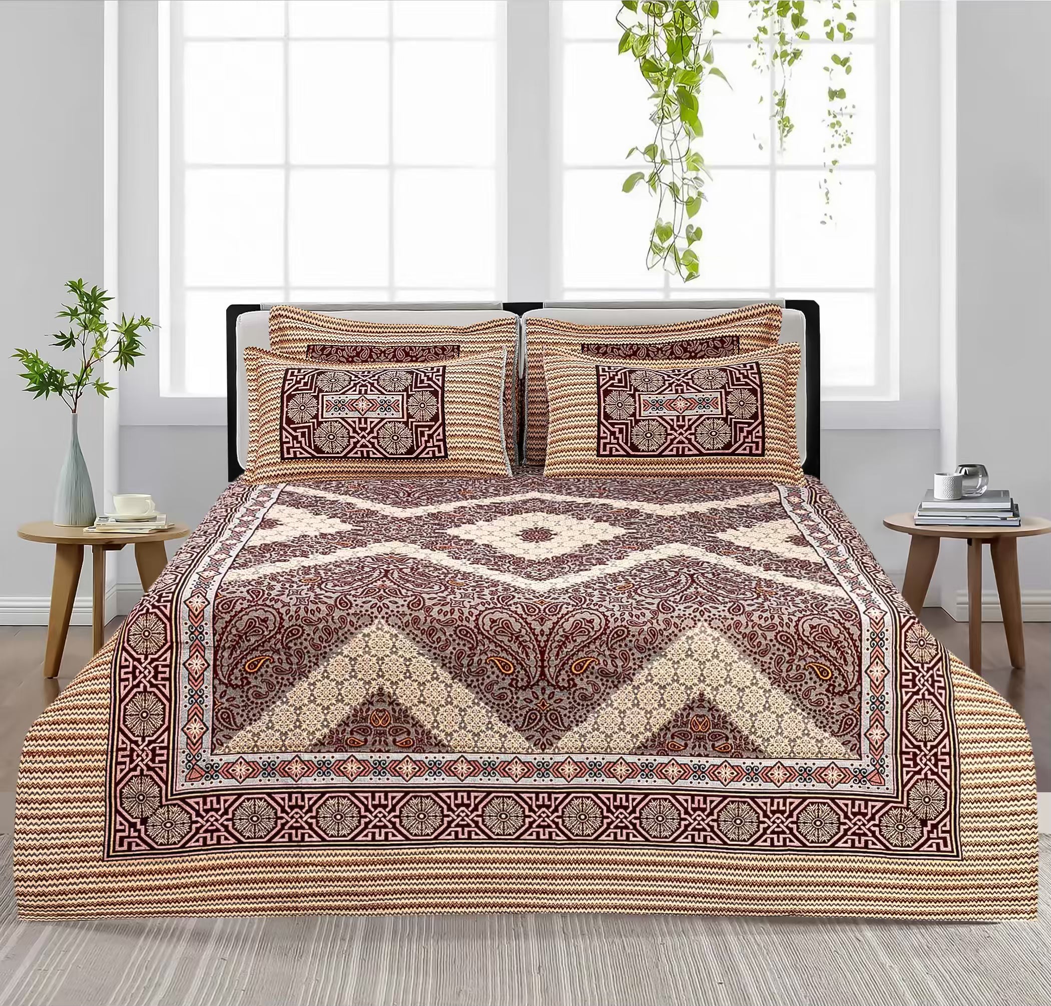 The Wirsa 4 Pillow Multani Bedsheet Set is tailored for a single and king bed and includes pillow covers, showcasing traditional Multani designs. Expertly crafted from high-quality fabric, it delivers durability, comfort, and a refined look. This set combines cultural heritage with practical usability, making it a sophisticated addition to any bedroom setting.
