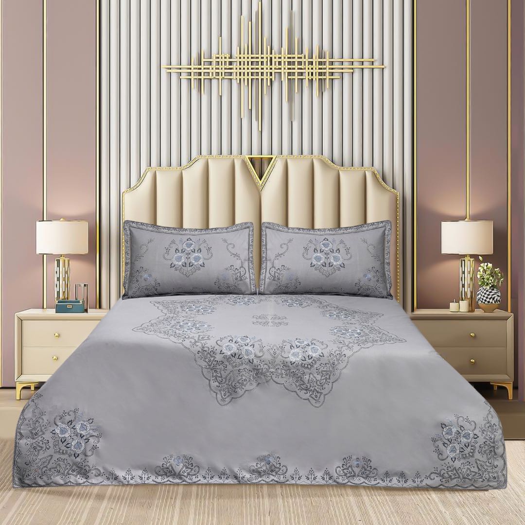 Cotton Embroidery Bedsheet Set combines premium cotton fabric with detailed embroidery, delivering a balance of durability and sophisticated design. This breathable bedding set offers lasting comfort while enhancing bedroom aesthetics, making it a practical and stylish choice for everyday use.