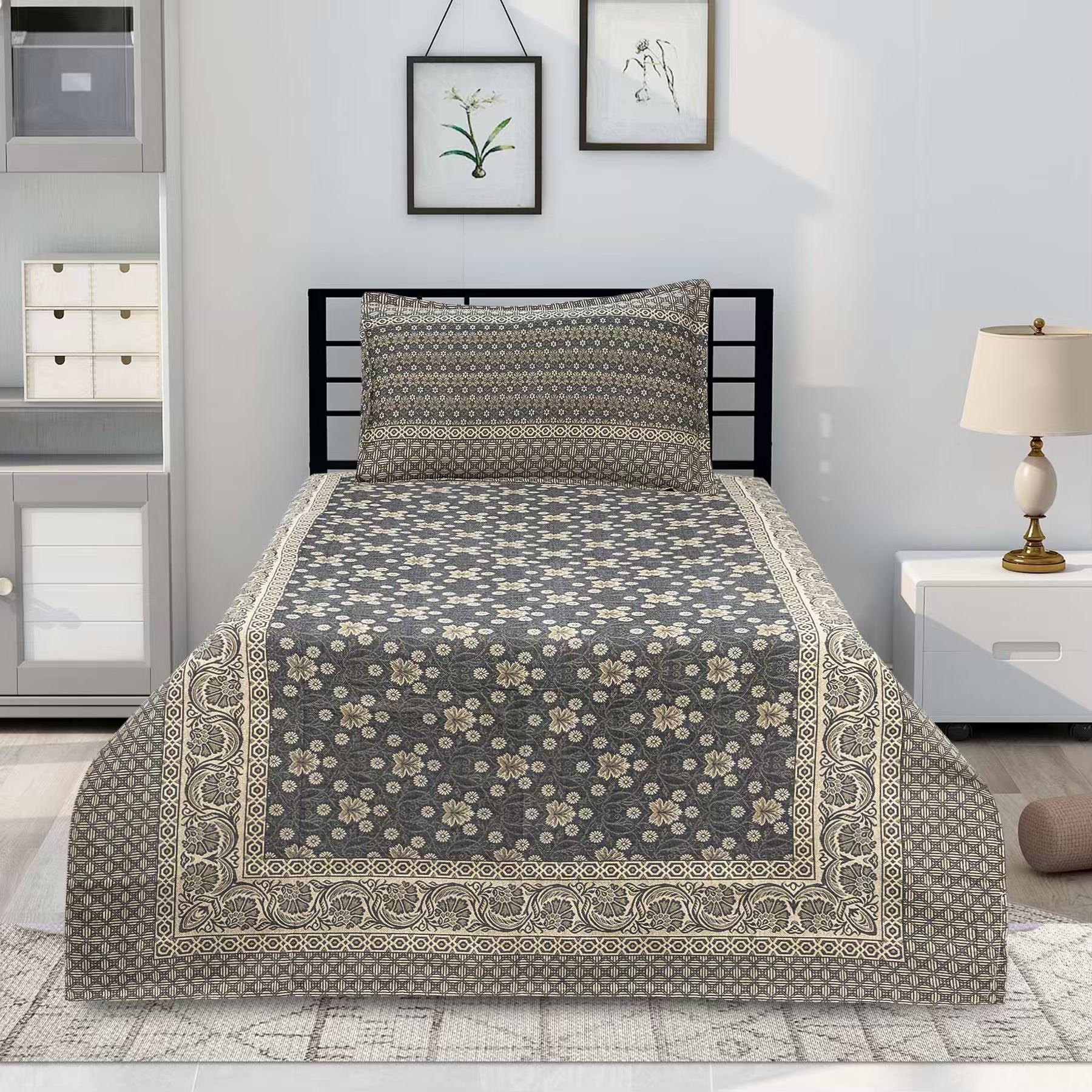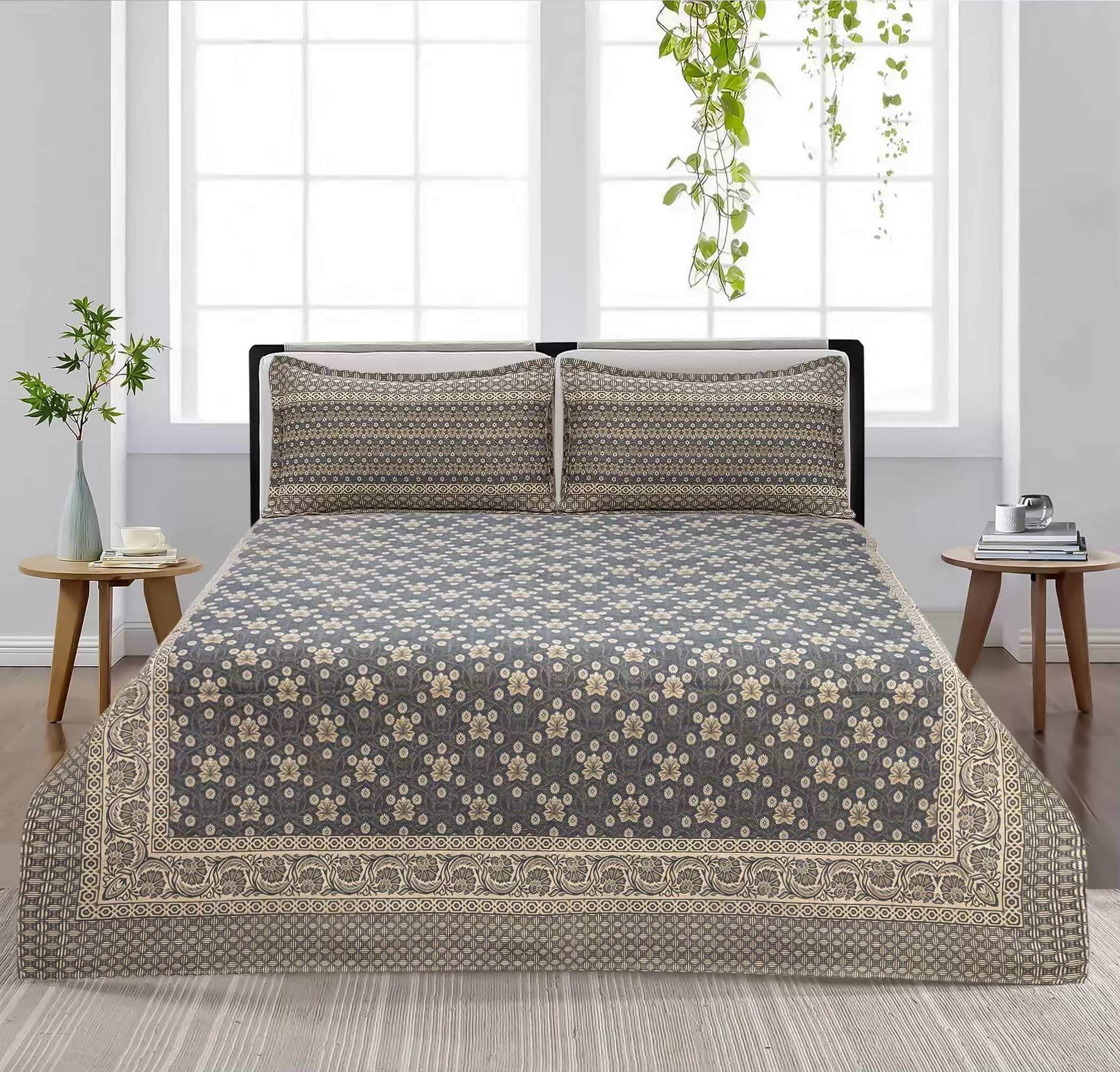 Grey Blend Gold Khaddar Multani Bedsheet Set