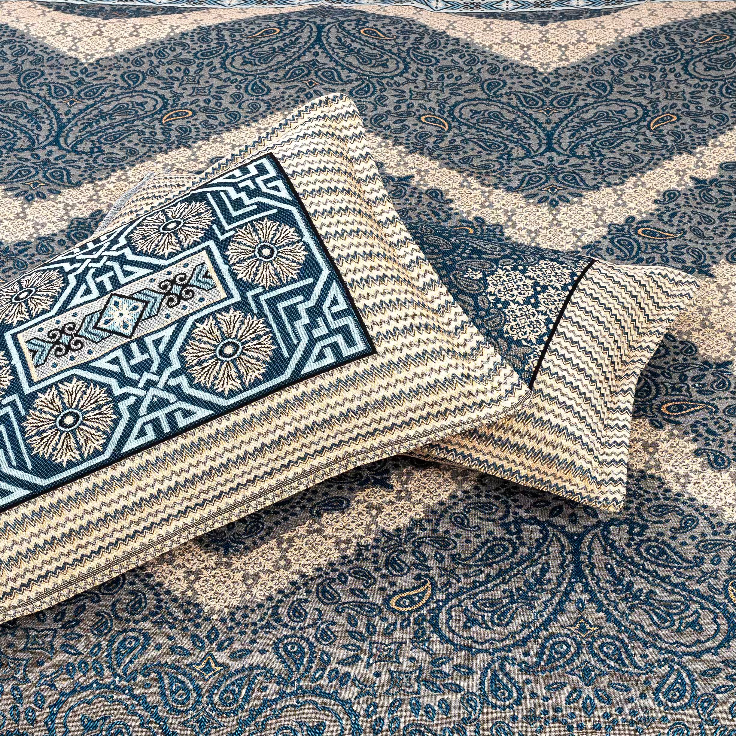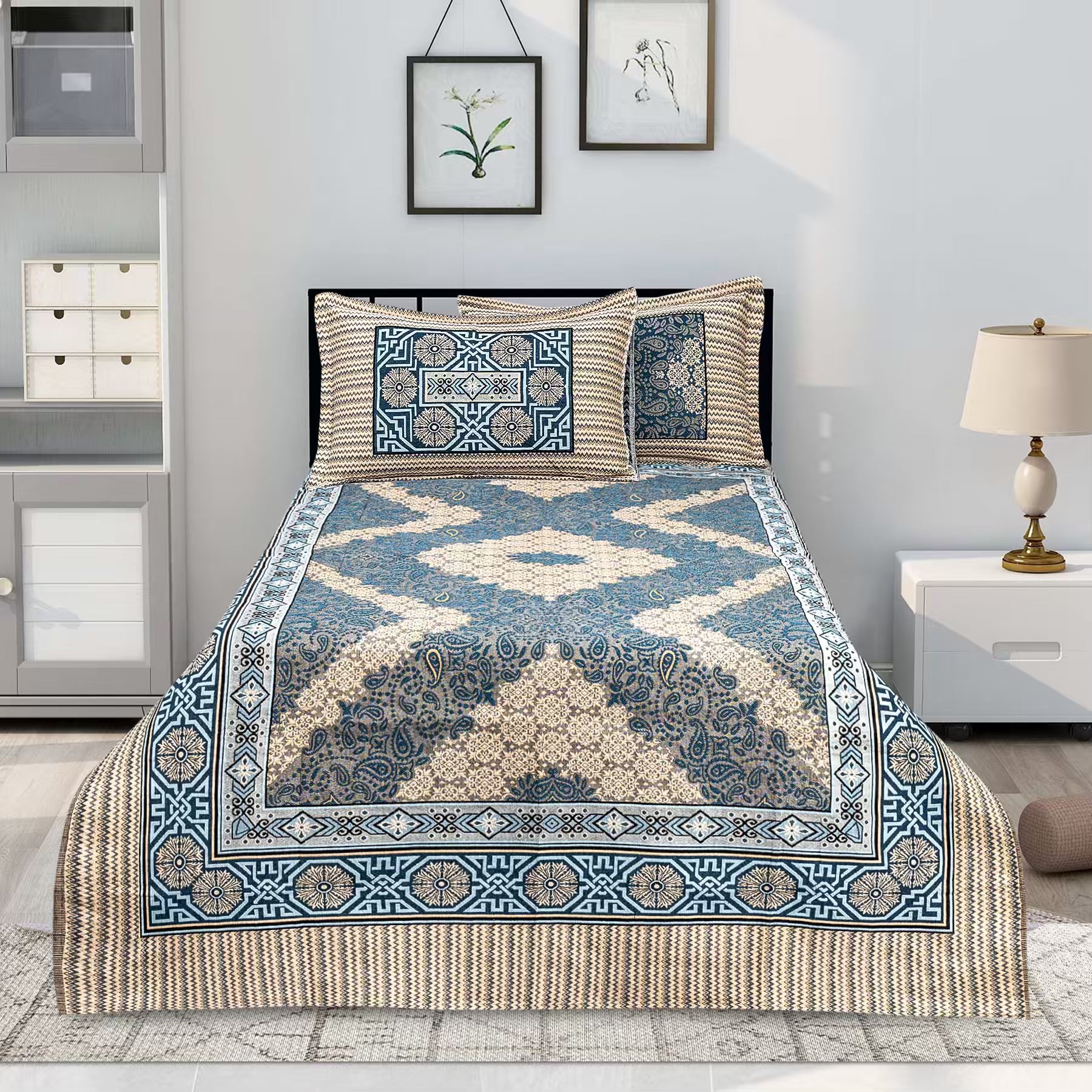 Wirsa Sea Blue 4 Pillow Multani Bedsheet Set (Single Two Pillow)