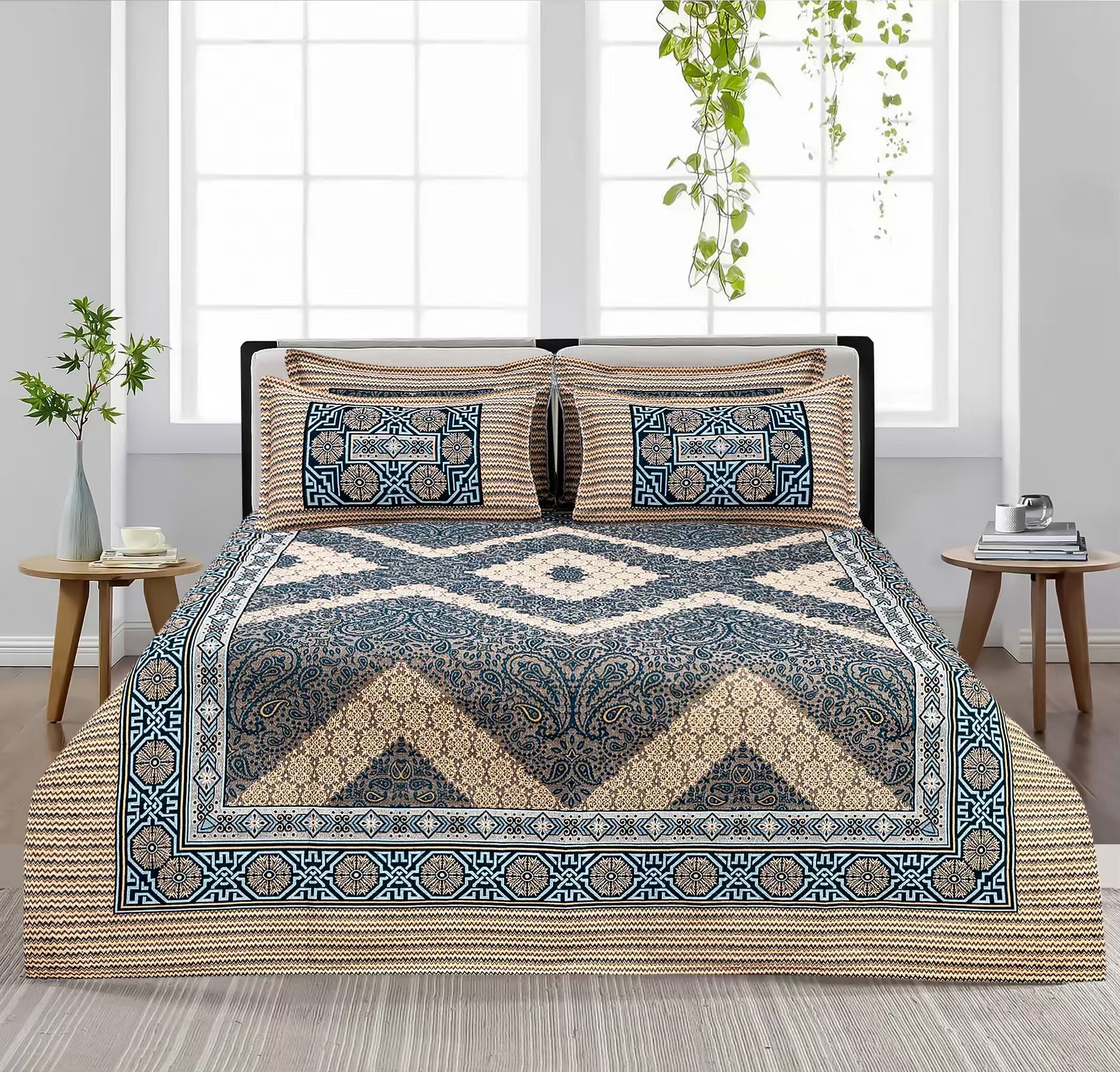 The Wirsa 4 Pillow Multani Bedsheet Set is tailored for a single and king bed and includes pillow covers, showcasing traditional Multani designs. Expertly crafted from high-quality fabric, it delivers durability, comfort, and a refined look. This set combines cultural heritage with practical usability, making it a sophisticated addition to any bedroom setting.
