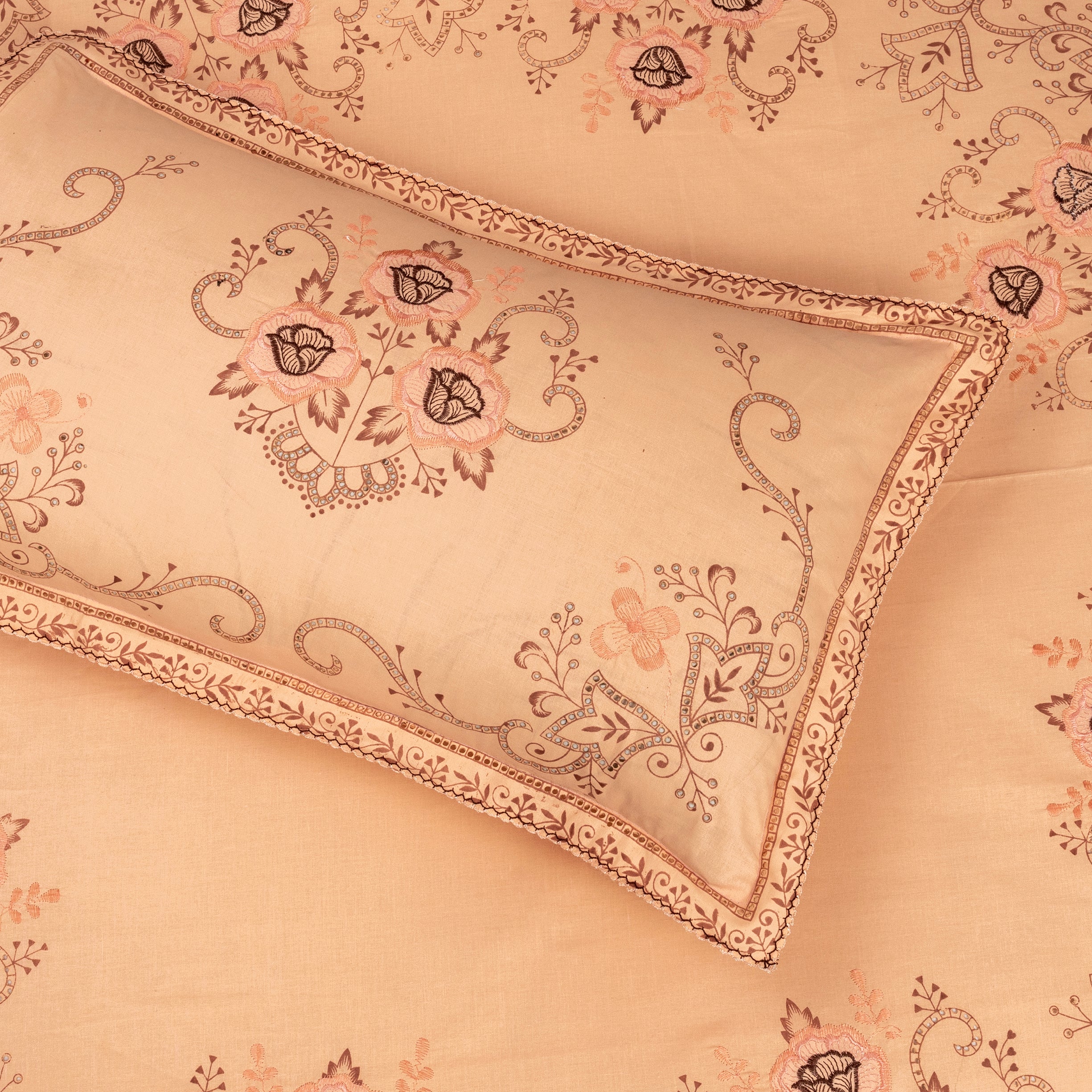 Cotton Embroidery Bedsheet Set combines premium cotton fabric with detailed embroidery, delivering a balance of durability and sophisticated design. This breathable bedding set offers lasting comfort while enhancing bedroom aesthetics, making it a practical and stylish choice for everyday use.