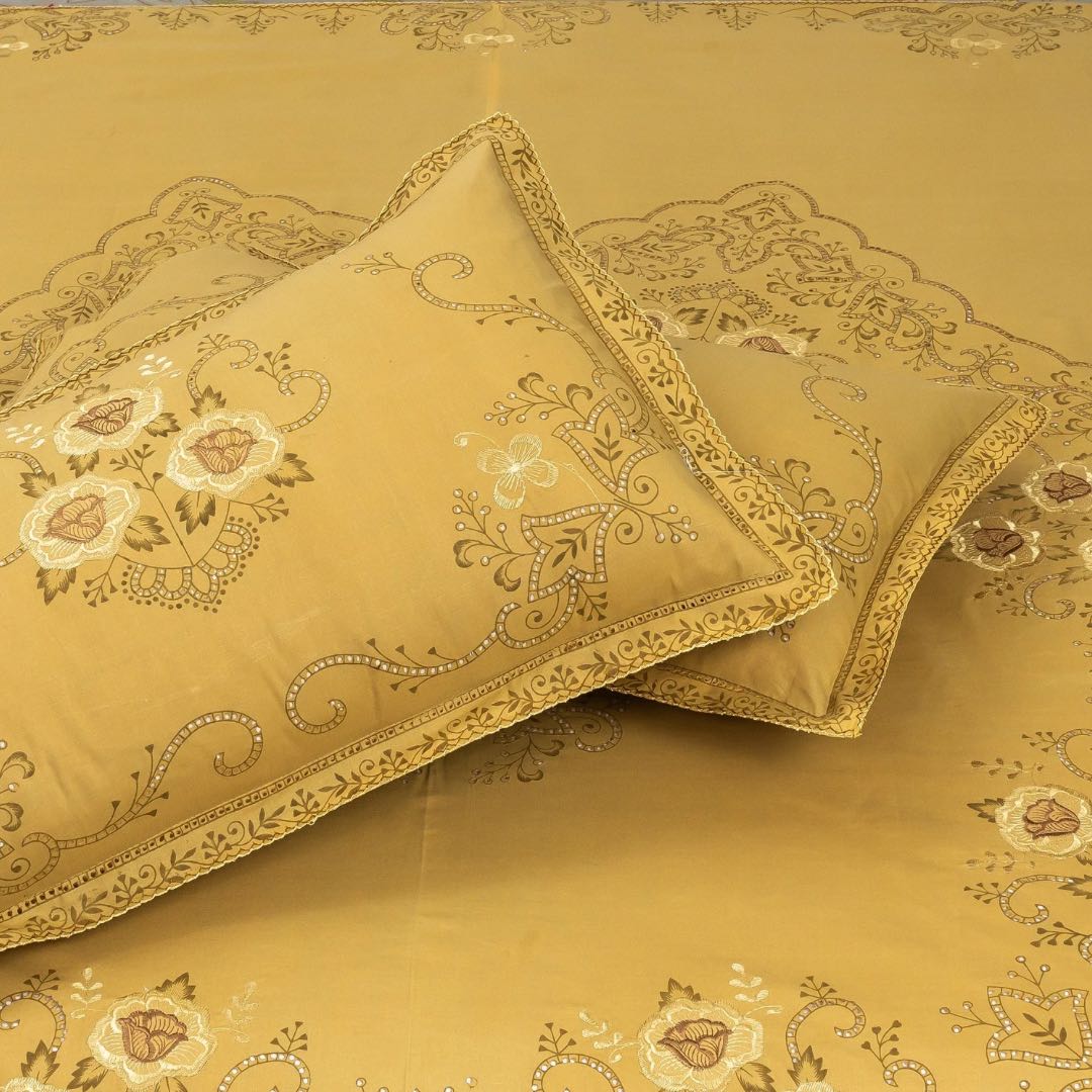 Cotton Embroidery Bedsheet Set combines premium cotton fabric with detailed embroidery, delivering a balance of durability and sophisticated design. This breathable bedding set offers lasting comfort while enhancing bedroom aesthetics, making it a practical and stylish choice for everyday use.