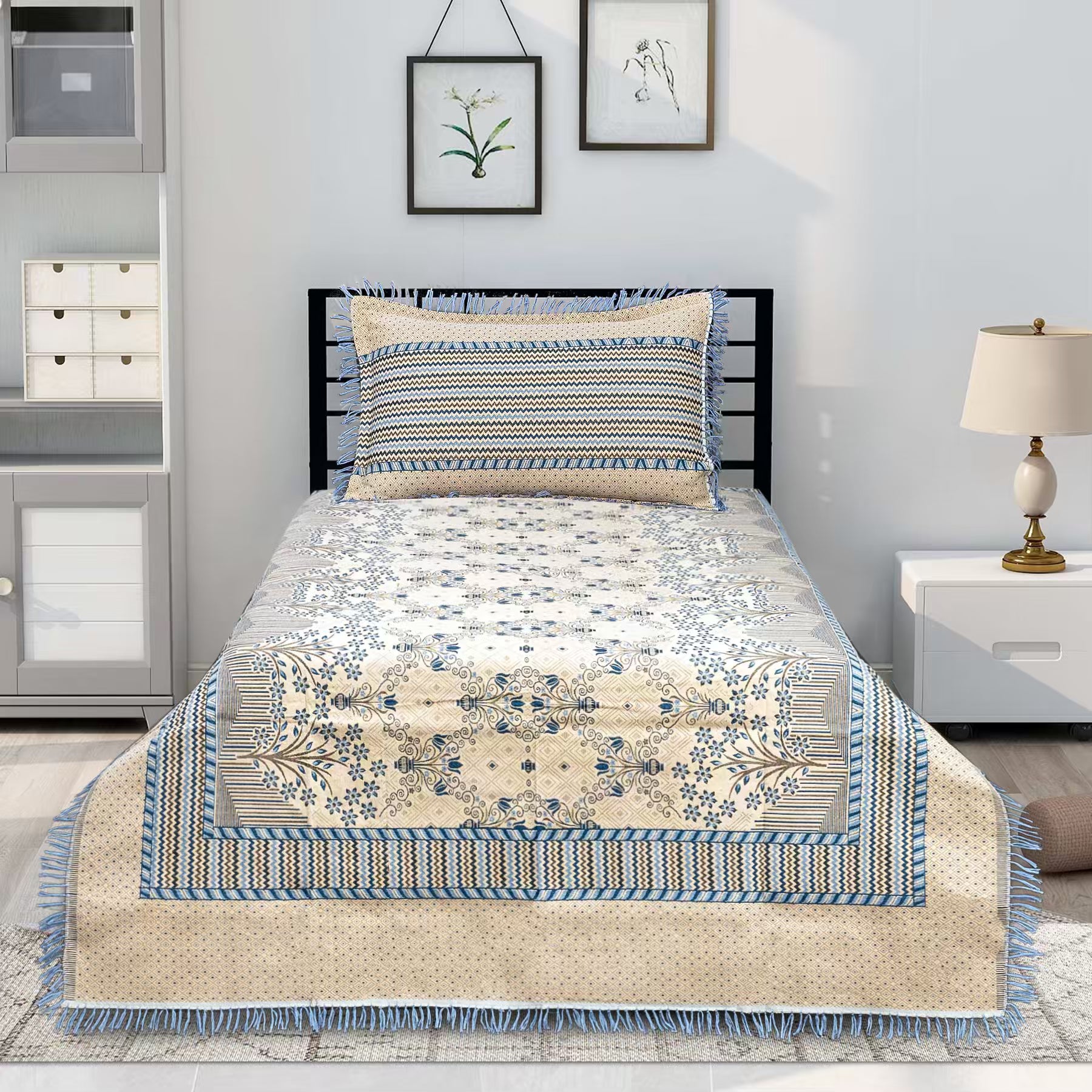 The Craft Multani Bedsheet Set combines traditional craftsmanship with modern comfort. Made from a soft blended fabric, it ensures durability and a smooth, luxurious feel. Its intricate Multani design adds a touch of elegance and cultural richness to any bedroom setting, while the breathable material promotes restful sleep. Ideal for those seeking a blend of aesthetic appeal and everyday functionality.