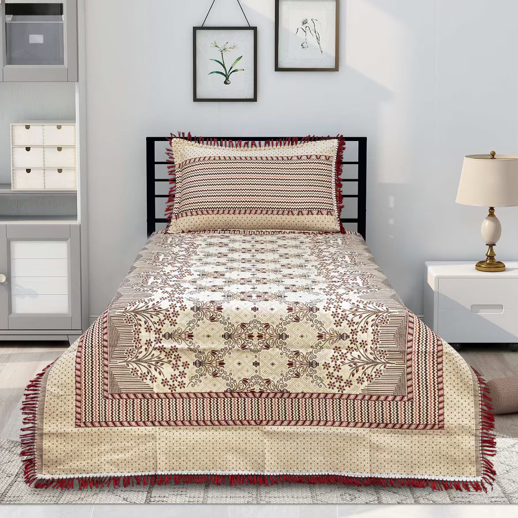 The Craft Multani Bedsheet Set combines traditional craftsmanship with modern comfort. Made from a soft blended fabric, it ensures durability and a smooth, luxurious feel. Its intricate Multani design adds a touch of elegance and cultural richness to any bedroom setting, while the breathable material promotes restful sleep. Ideal for those seeking a blend of aesthetic appeal and everyday functionality.