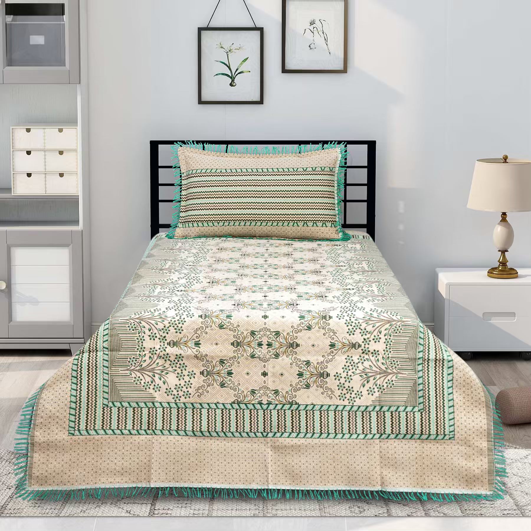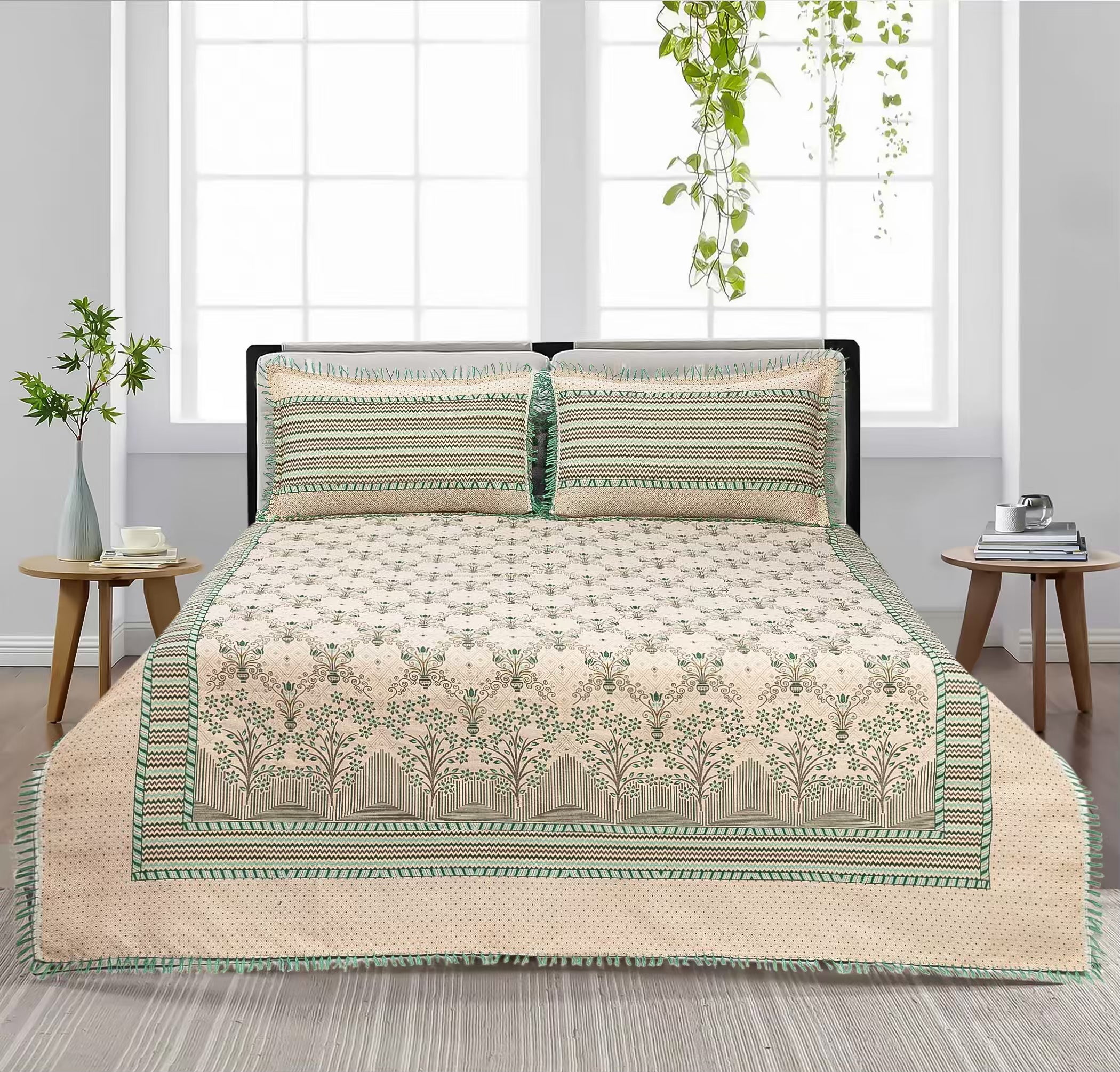 The Craft Multani Bedsheet Set combines traditional craftsmanship with modern comfort. Made from a soft blended fabric, it ensures durability and a smooth, luxurious feel. Its intricate Multani design adds a touch of elegance and cultural richness to any bedroom setting, while the breathable material promotes restful sleep. Ideal for those seeking a blend of aesthetic appeal and everyday functionality.
