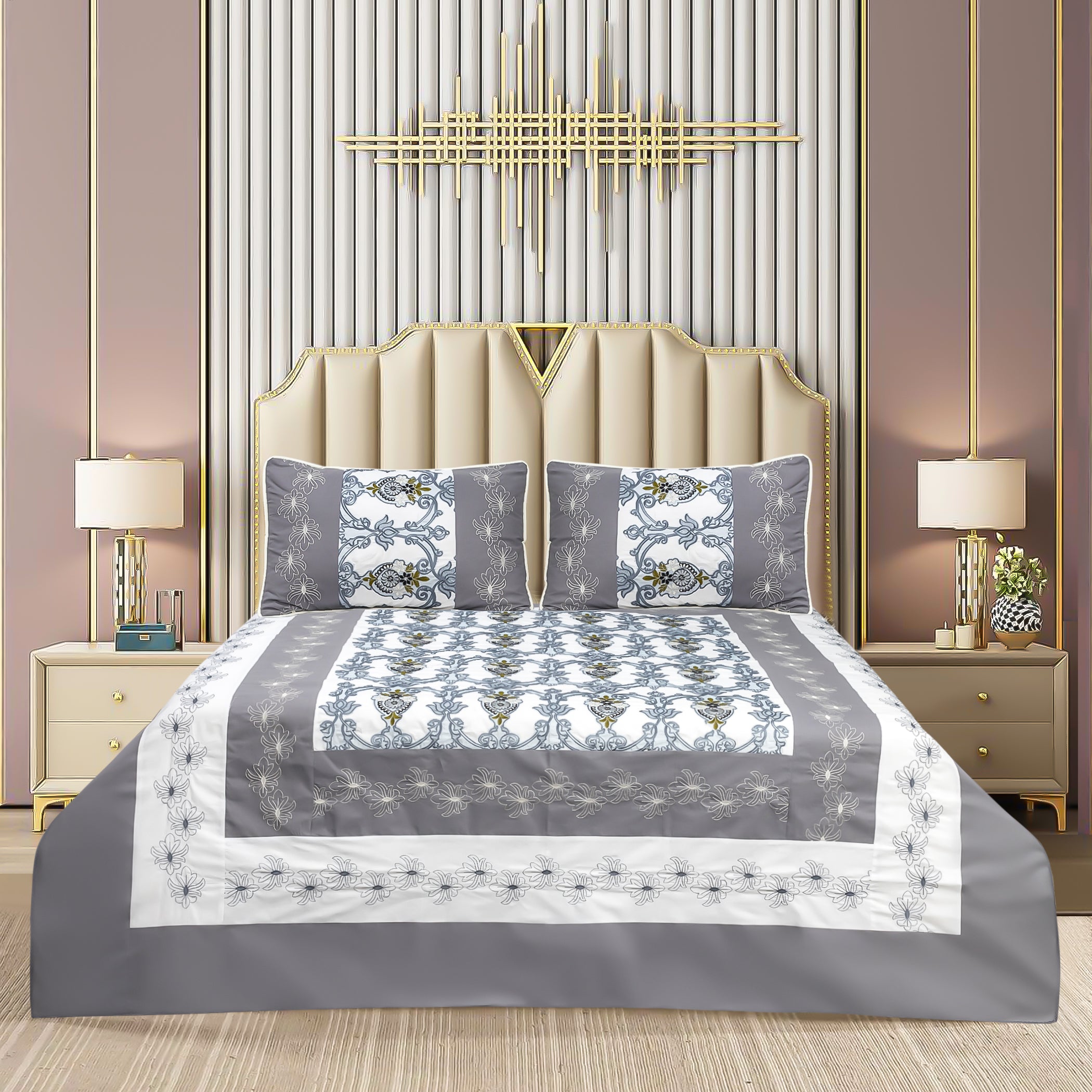 Cotton Embroidery Bedsheet Set combines premium cotton fabric with detailed embroidery, delivering a balance of durability and sophisticated design. This breathable bedding set offers lasting comfort while enhancing bedroom aesthetics, making it a practical and stylish choice for everyday use.