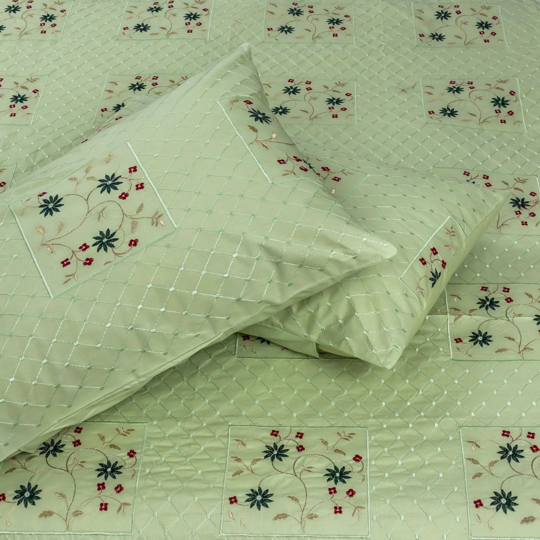 Minty Vibe Cotton Embroidery Bedsheet Set