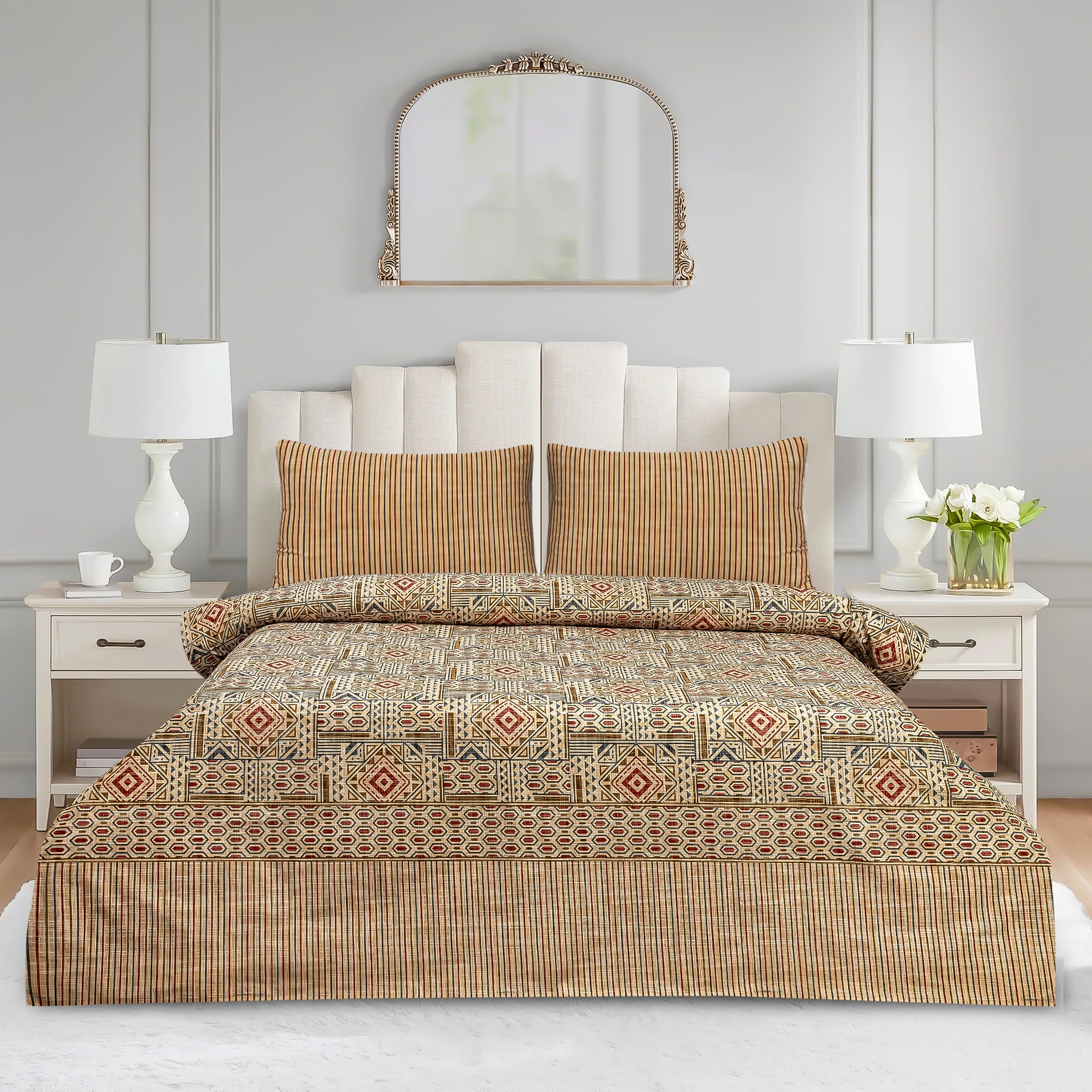 Experience the perfect blend of comfort and style with Soft Cotton Printed Bedsheet Set. Crafted from high-quality cotton, this set offers breathability and softness for a restful night's sleep. Its subtle print adds a calming, elegant touch to any bedroom decor. Durable and easy to maintain, this bedsheet set ensures lasting freshness and comfort. Ideal for those seeking both functionality and refined aesthetics in their bedding.