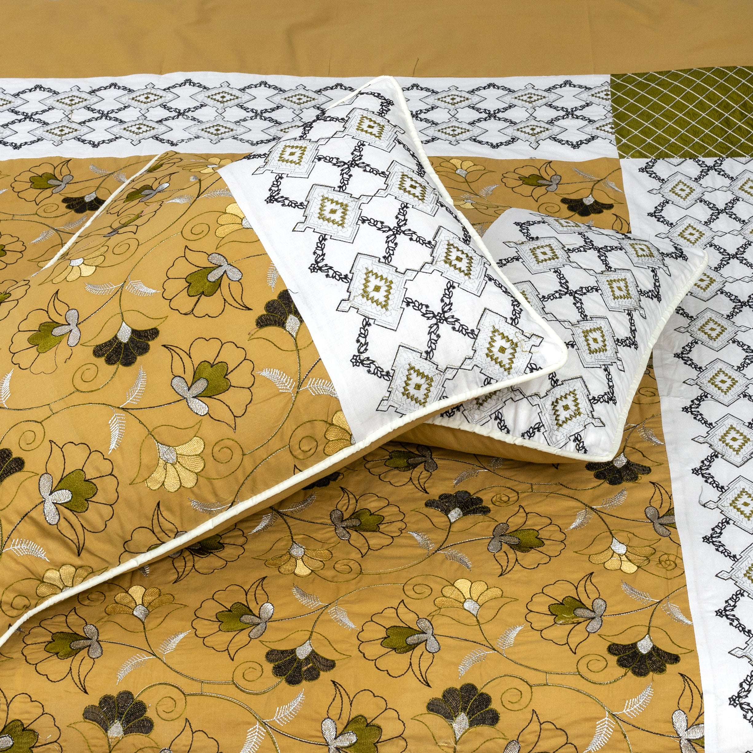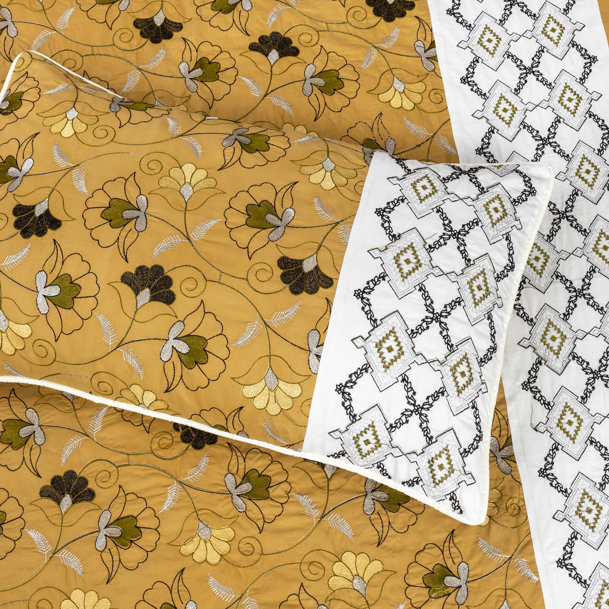 Mustardie Cotton Embroidery Bedsheet Set