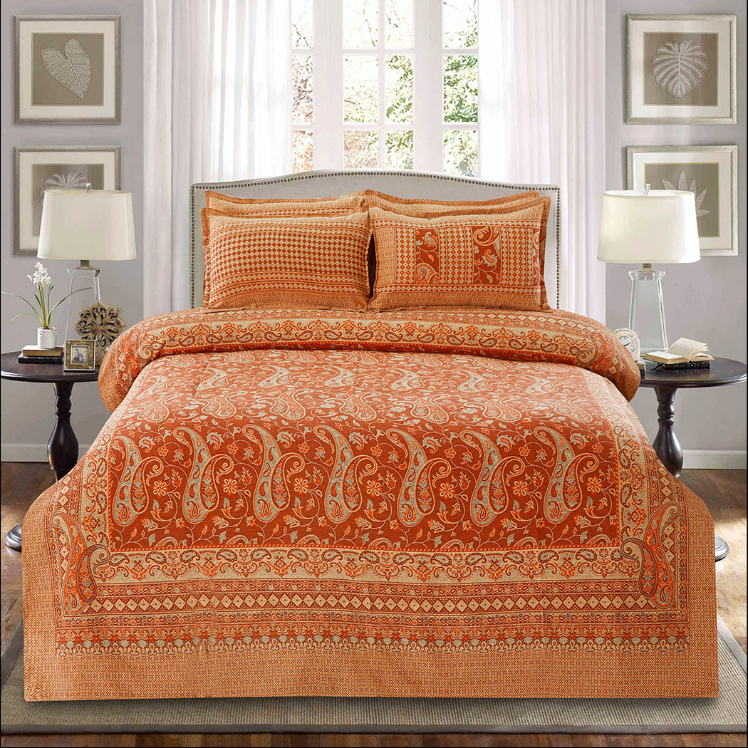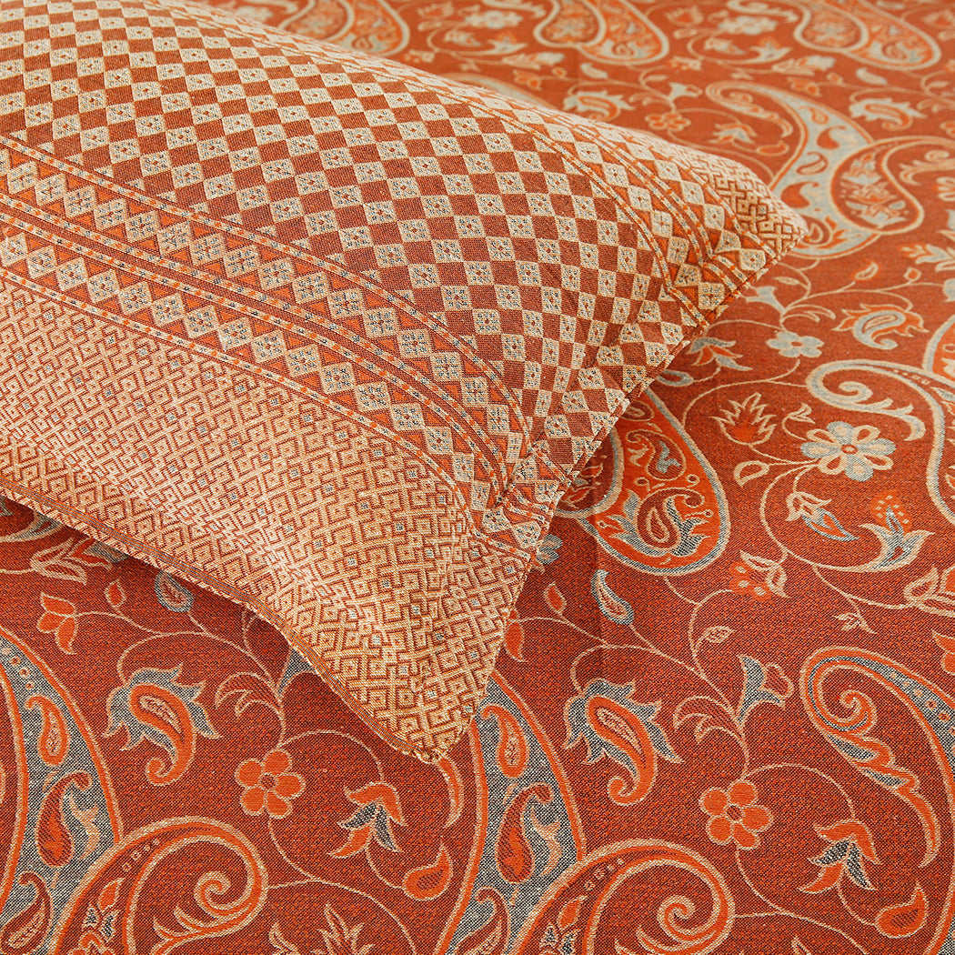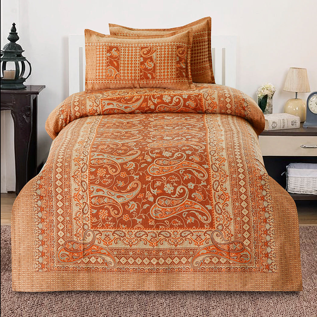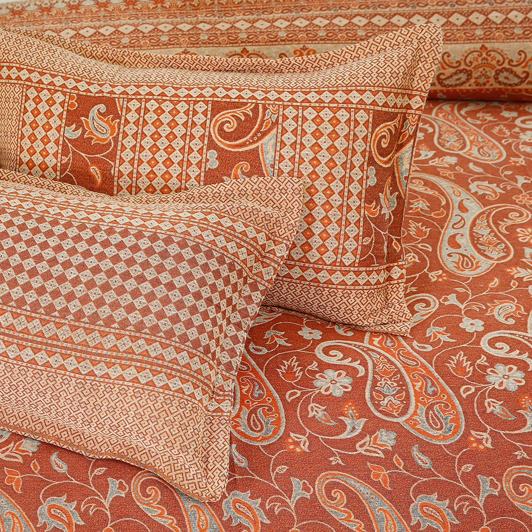 Pearl Khaddar Orange 4 Pillow Multani Bedsheet Set (Single Two Pillow)