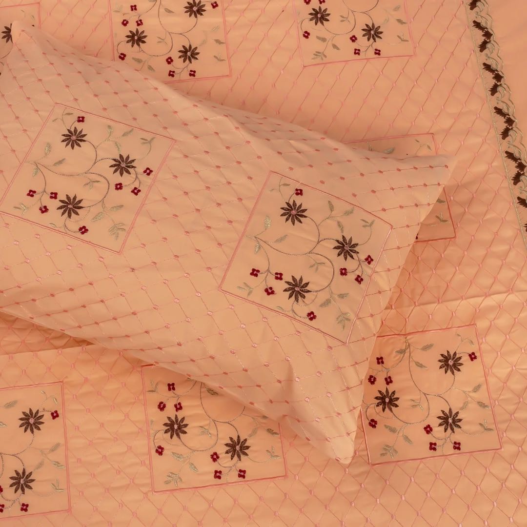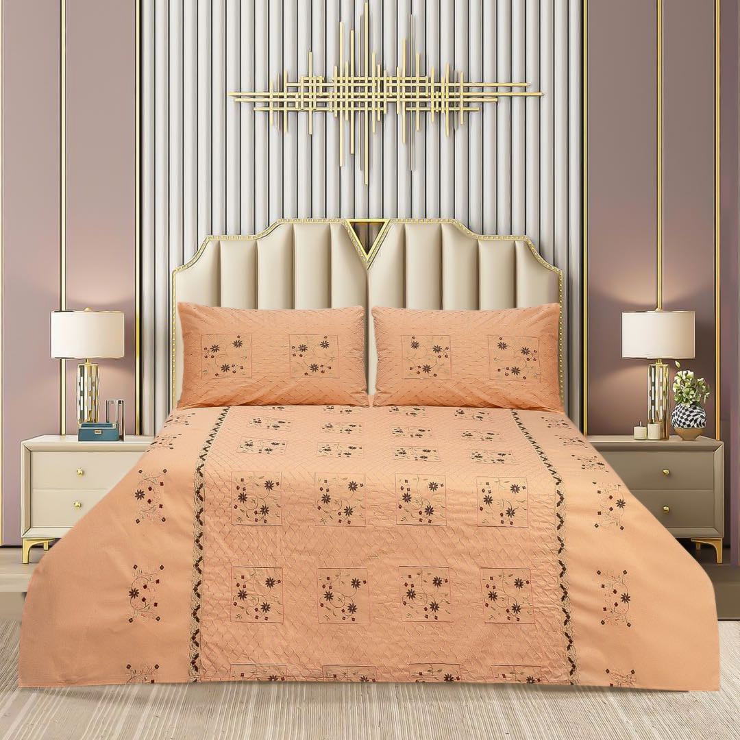 Cotton Embroidery Bedsheet Set combines premium cotton fabric with detailed embroidery, delivering a balance of durability and sophisticated design. This breathable bedding set offers lasting comfort while enhancing bedroom aesthetics, making it a practical and stylish choice for everyday use.