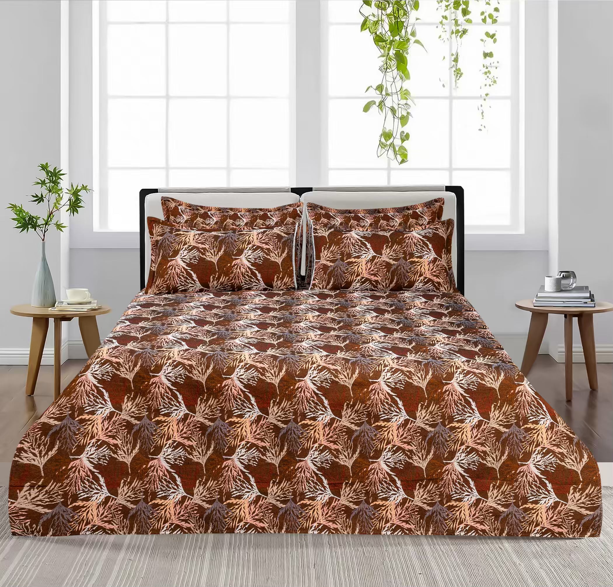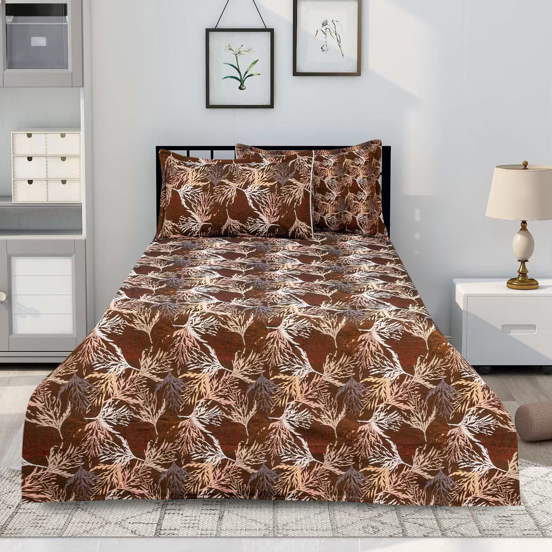 Shahi Chocolate Brown 4 Pillow Multani Bedsheet Set (Single Two Pillow)