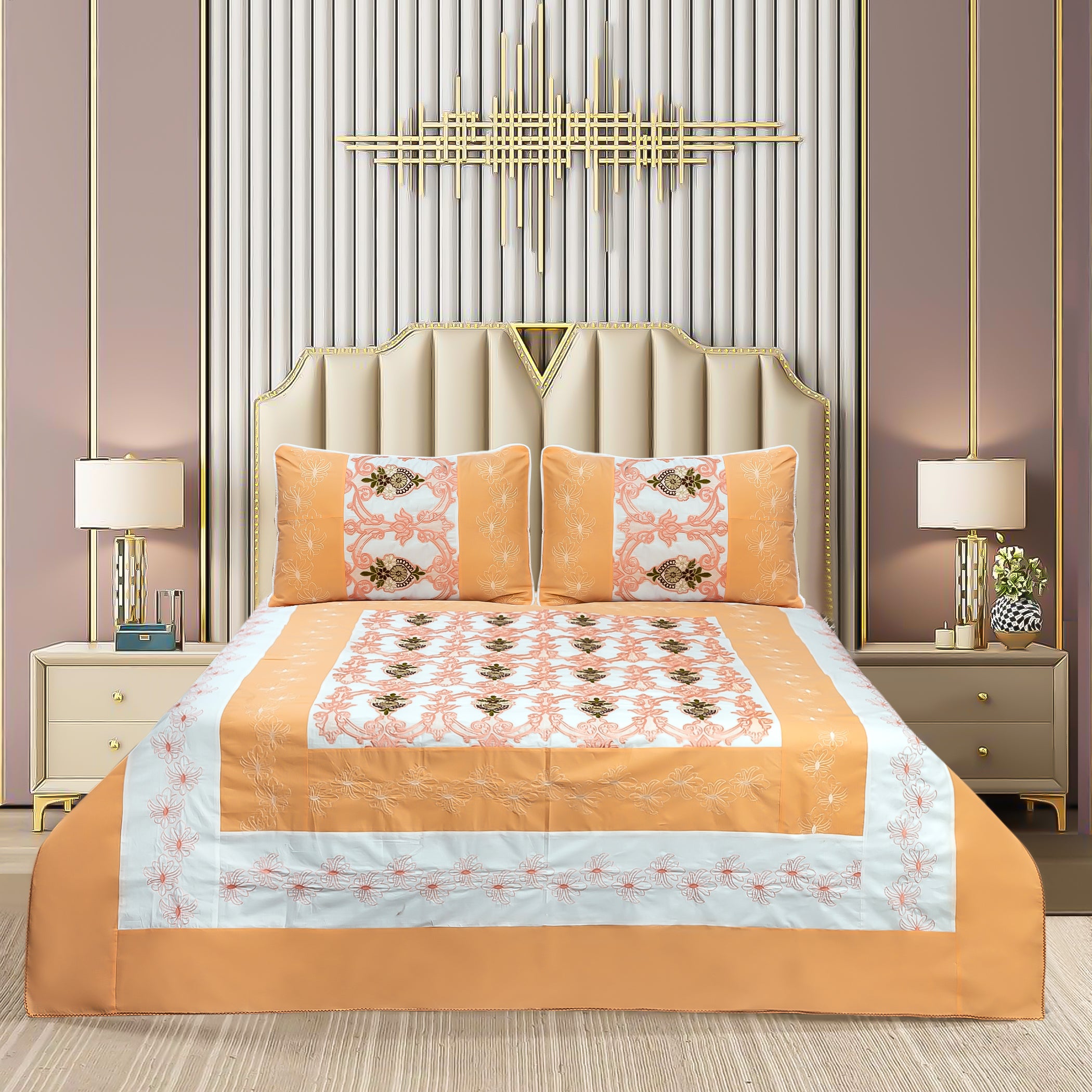 Cotton Embroidery Bedsheet Set combines premium cotton fabric with detailed embroidery, delivering a balance of durability and sophisticated design. This breathable bedding set offers lasting comfort while enhancing bedroom aesthetics, making it a practical and stylish choice for everyday use.