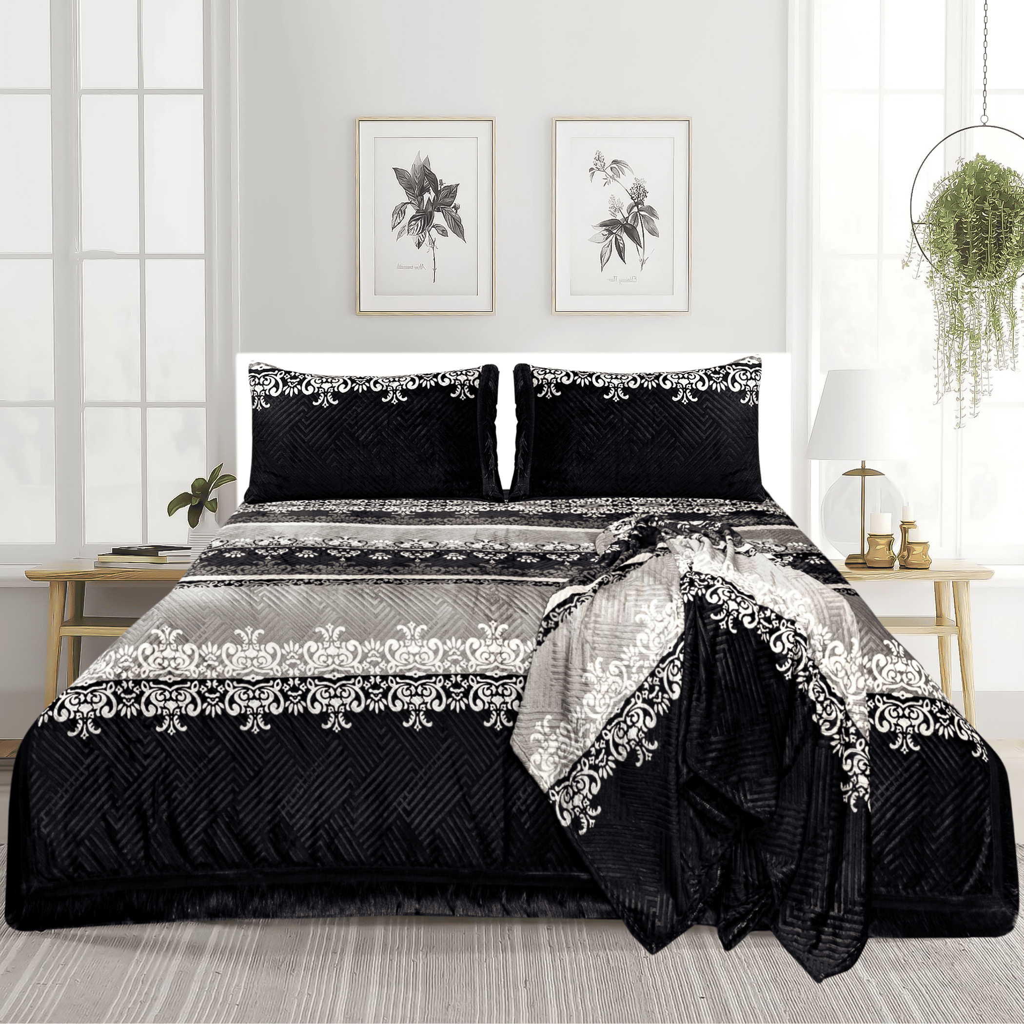 Introducing the Solara Fleece Blanket Set, a must-have for cozy nights and chilly days. Crafted with high-quality fleece, this set includes blanket, a sheet and pillowcases for maximum comfort and warmth. Perfect for snuggling up with a loved one or keeping yourself warm during outdoor activities. Don't sacrifice style for comfort, the Solara Fleece Blanket Set has it all.