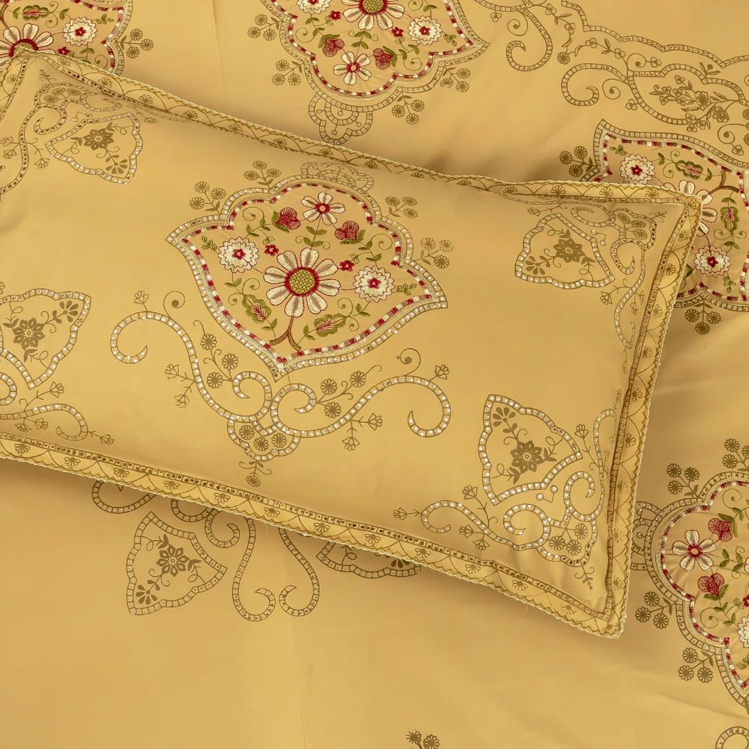 Cotton Embroidery Bedsheet Set combines premium cotton fabric with detailed embroidery, delivering a balance of durability and sophisticated design. This breathable bedding set offers lasting comfort while enhancing bedroom aesthetics, making it a practical and stylish choice for everyday use.