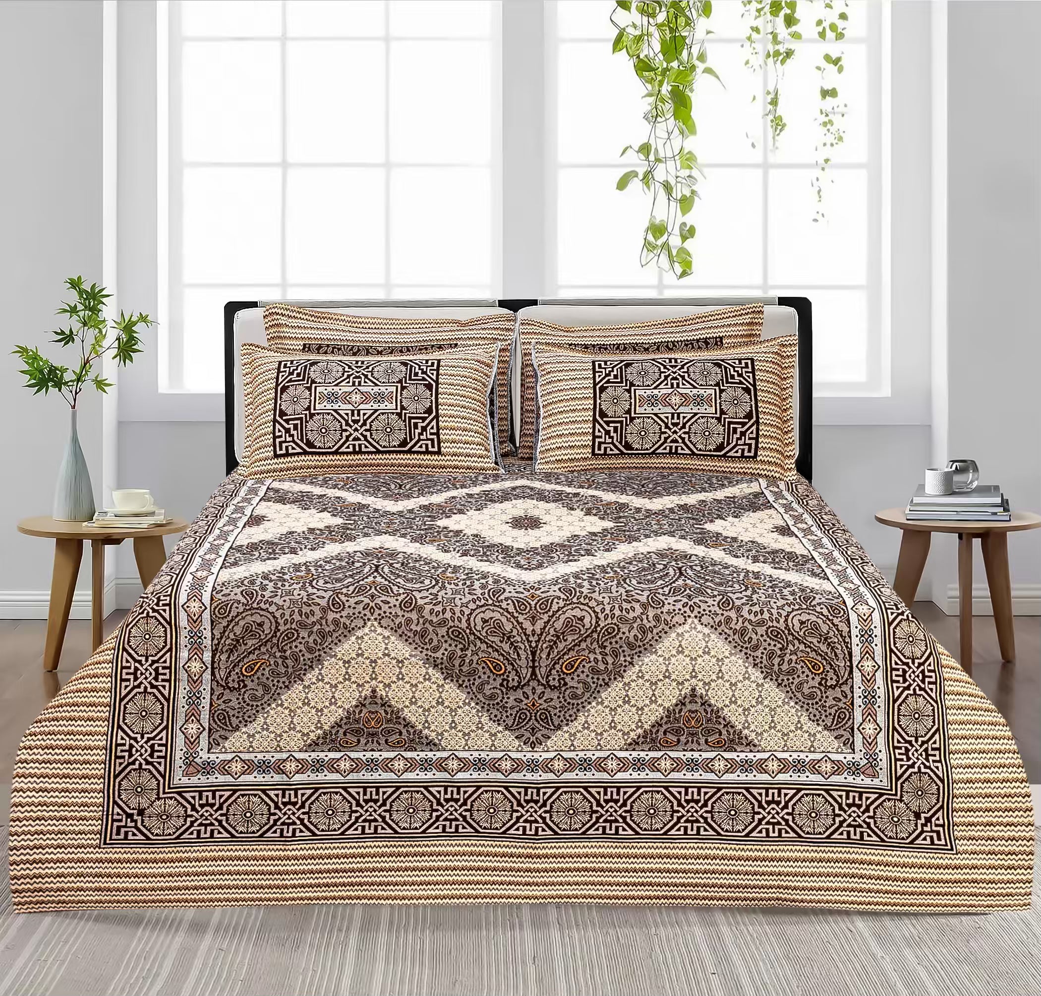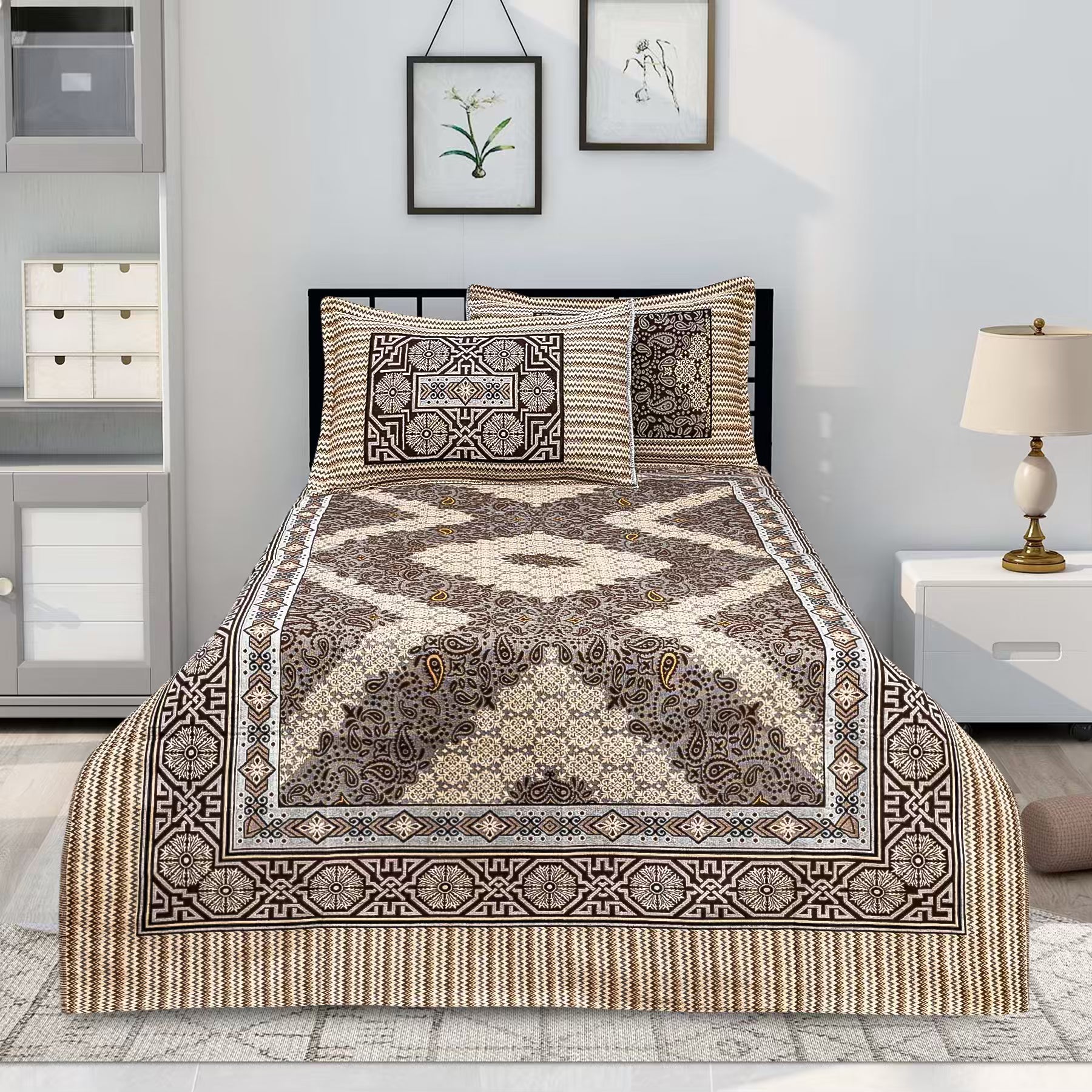 Wirsa Coffee 4 Pillow Multani Bedsheet Set (Single Two Pillow)
